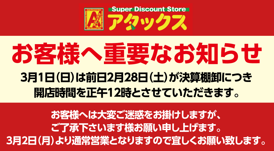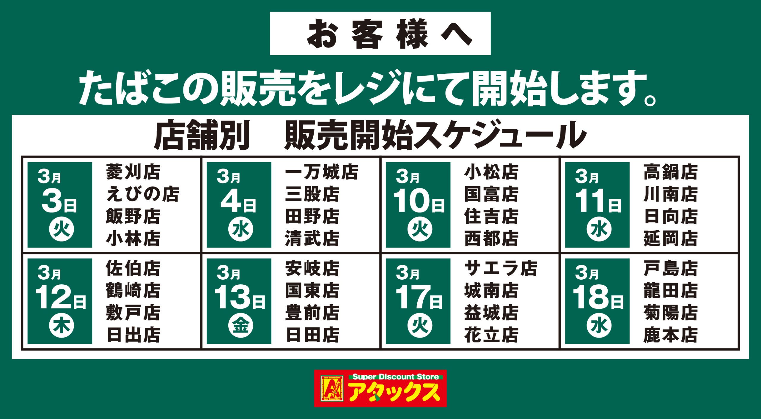 アタックス小林店 開店のお知らせ